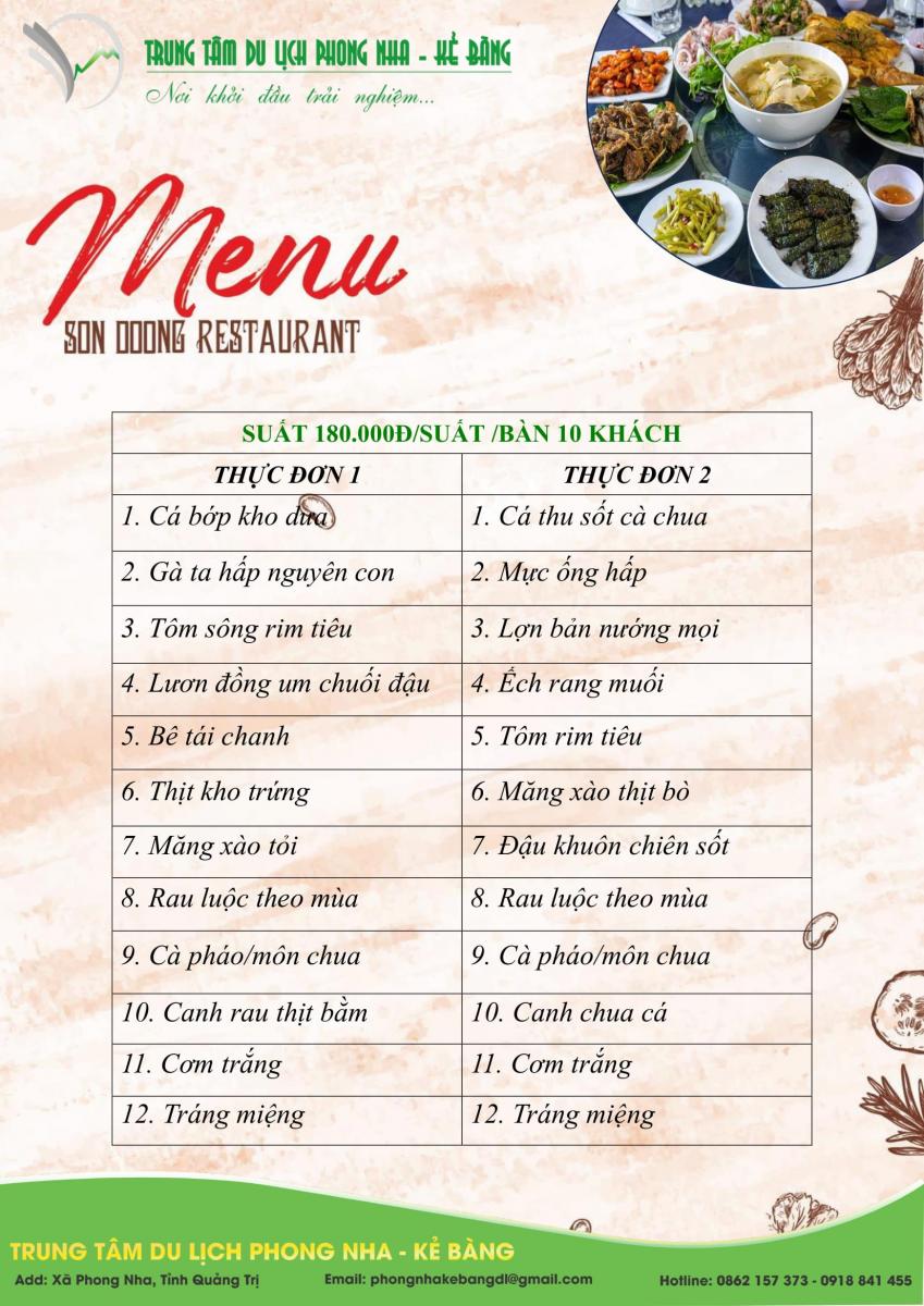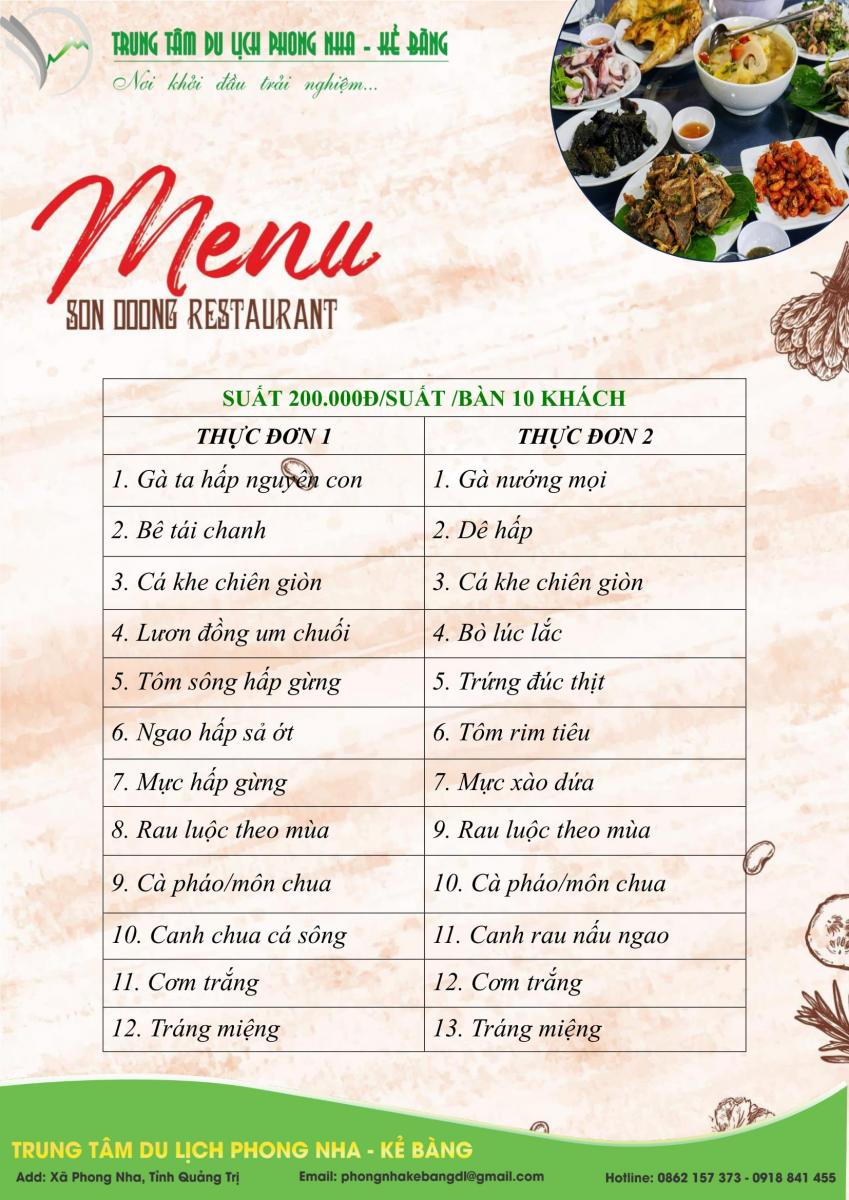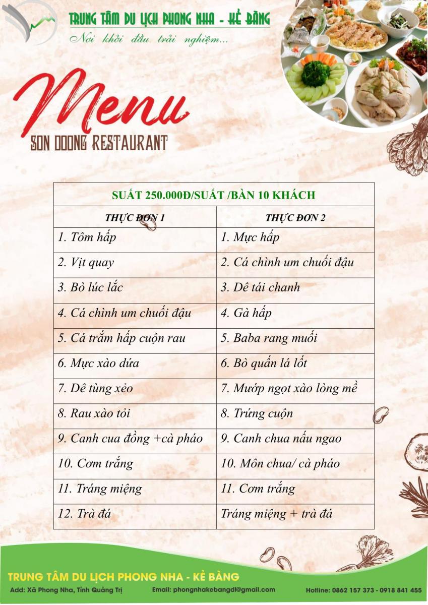 THỰC ĐƠN NHÀ HÀNG SƠN ĐOÒNG