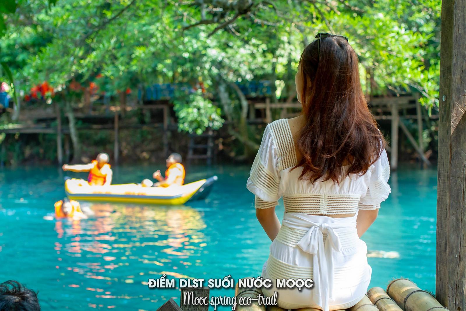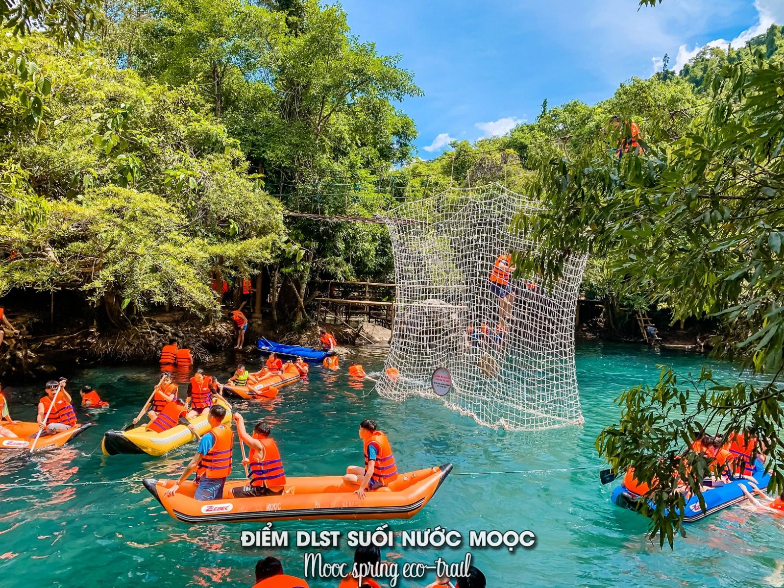 Ở đây, du khách sẽ được thư giãn với các hoạt động như tắm suối, chèo thuyền kayak, chinh phục cầu mạo hiểm trên mặt nước hoặc chỉ đơn giản là thưởng ngoạn trên những chiếc cầu tre uốn quanh dòng suối. Bữa trưa sẽ được phục vụ ngay trong khu vực suối, trên những chòi gỗ với mái che bằng lá, đơn sơ nhưng vô cùng thoải